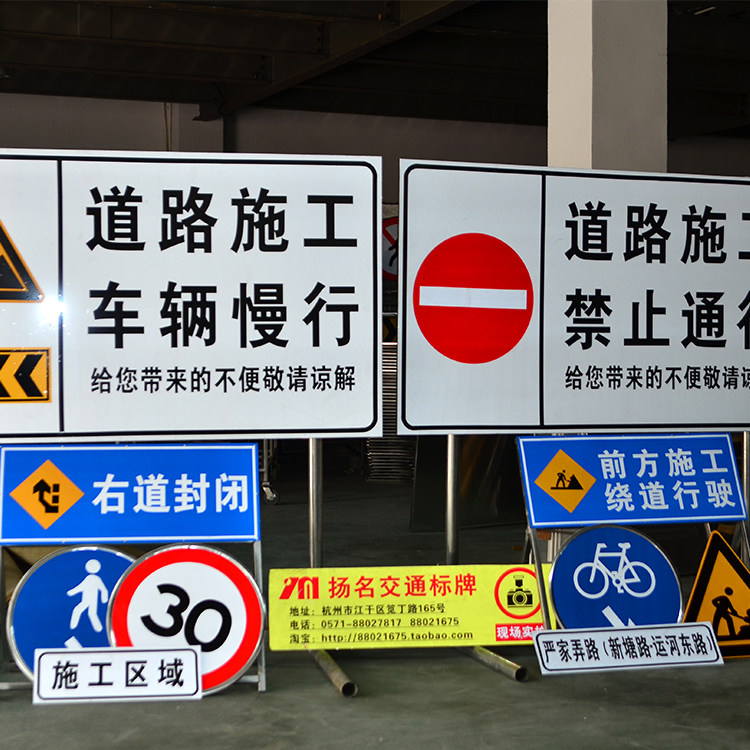 Road construction safety warning signs traffic pointing to reflective prompts ahead construction pay attention to safe detours