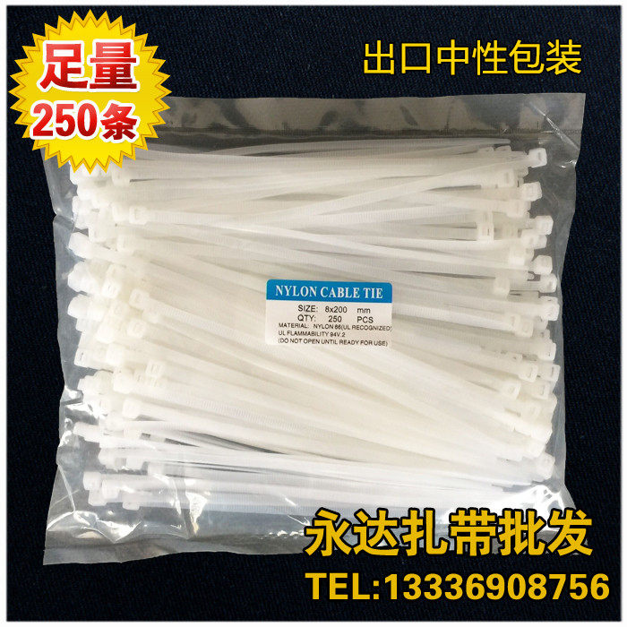 8 * 200mm self-locked nylon strap plastic big zal wire fixing bundle line with strangled dog white black