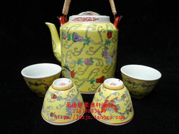 Jingdezhen Factory Goods Porcelain Hand-painted Pink Yellow Earth Melon and Mianyang Ti-liang Pot Tea Set Decoration Collection Old Porcelain