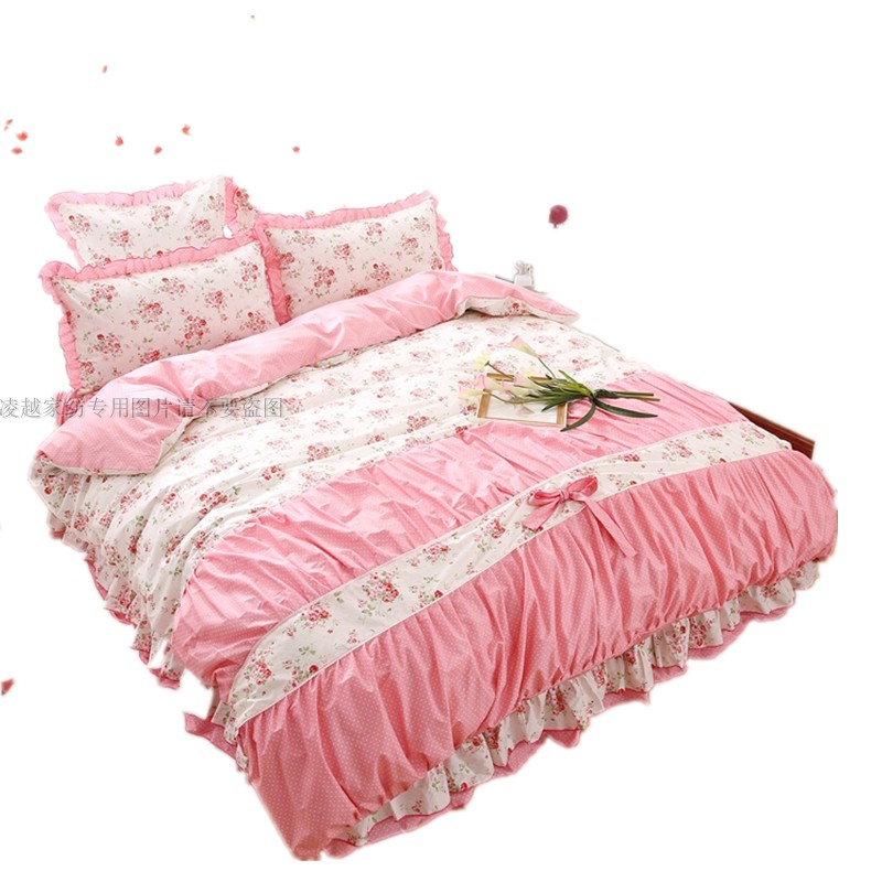 Han Style Princess style butterfly knot full cotton bed dress single piece pure cotton bed cover lace anti-slip bed cover bed skirt-style hood-Taobao