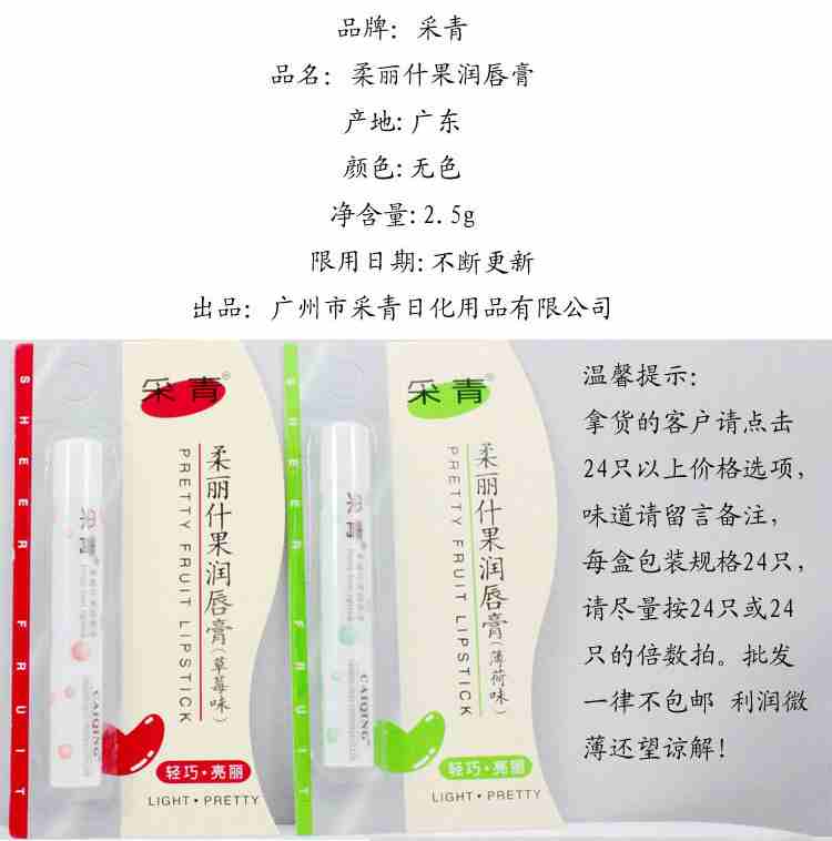 Picking green and soft fruit lip balm light riding bright 2 5g moisturizing moisturizing anti-chapped colorless lip balm