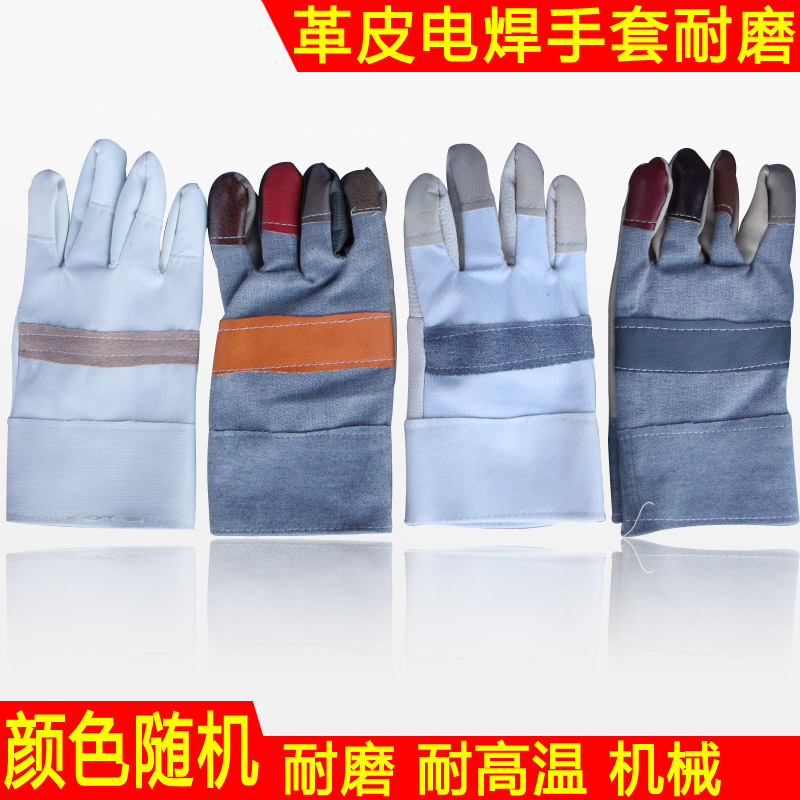 Leather electric welding non-cowhide gloves protection wear-resistant work gloves handling labor protection short welder half leather gloves