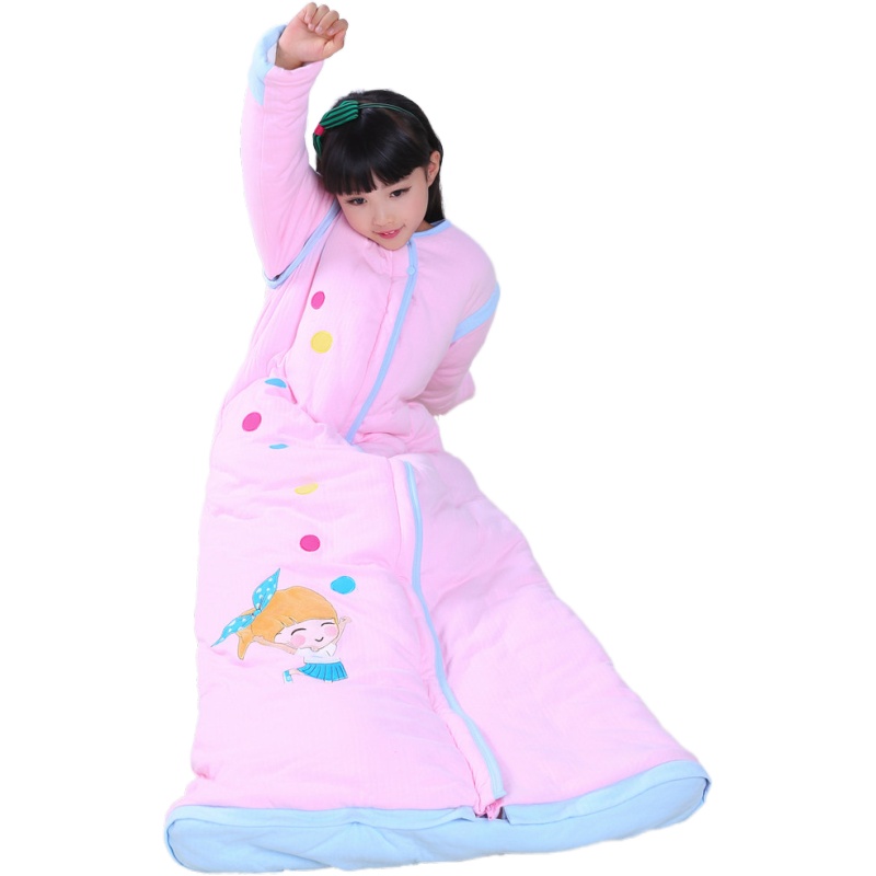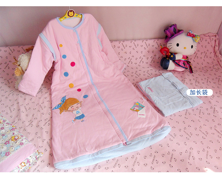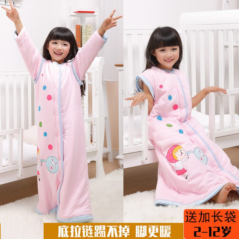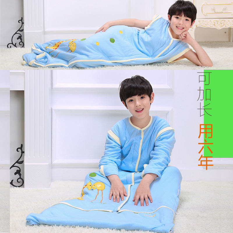 Spring and autumn cotton sleeping bag large children's long tube style primary school baby children thin cotton disassembly sleeve zipper anti-kick is extended