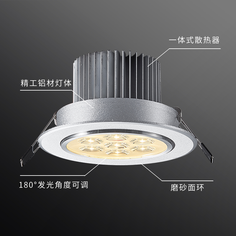 5W positive white light (2pcs) 7W positive white light (open hole 9-11cm) 3W warm white light (2pcs) wine red 12W platinum and silver light (open hole 11-13cm)