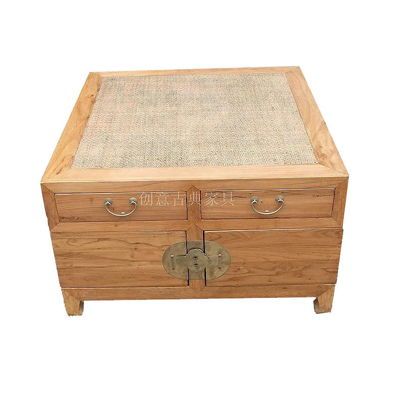 Solid Wood Quadrilateral Box Tea Table TV Cabinet Combo Old Elm Wood Chinese Living Room Multifunction Storage Log Furniture Custom