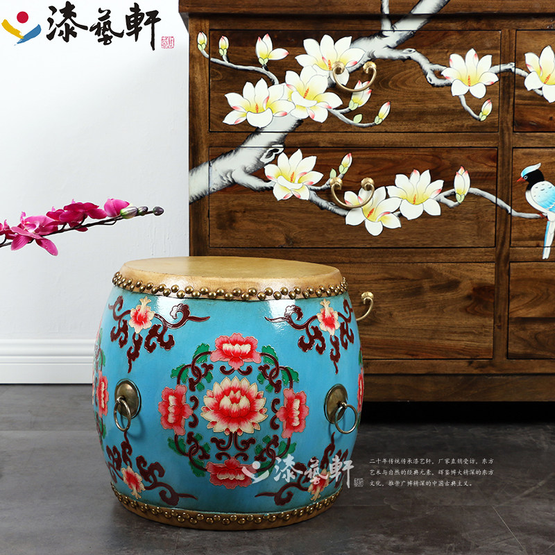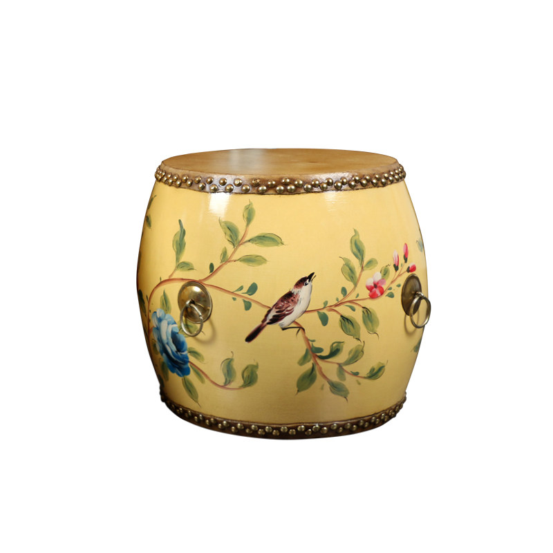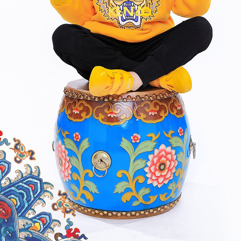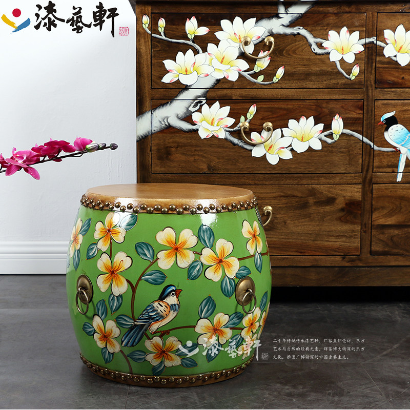 New Chinese style creative solid wood fashion leather painted drum stool changing shoe stool sofa living room children round low stool