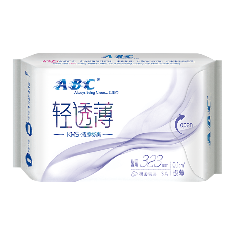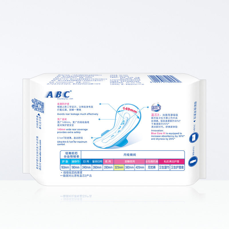 ABC extended night use 323mm cotton soft breathable ultra-thin 0 1cm cool sanitary napkin aunt towel women wholesale