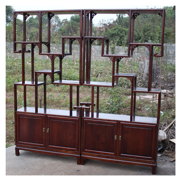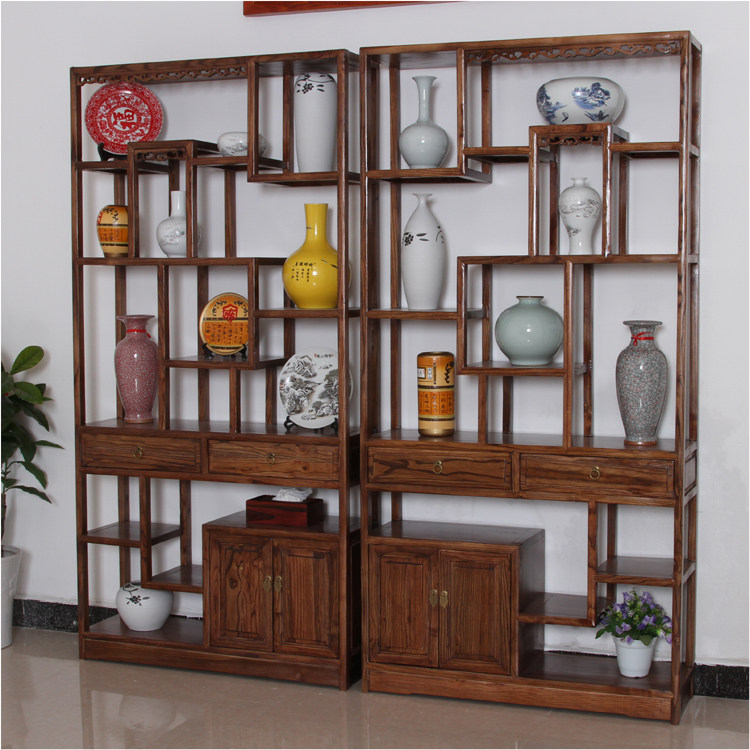 New Chinese style solid wood Bogu rack partition simple antique rack Duobaoge storage display cabinet elm pineapple lattice bookshelf
