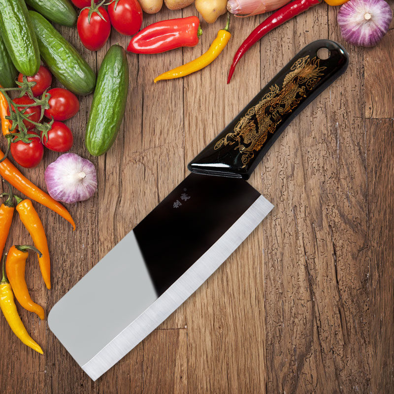 Single Wooden Box Gift Set Black Gold Dragon Mirror Ceramic Kitchen Knife