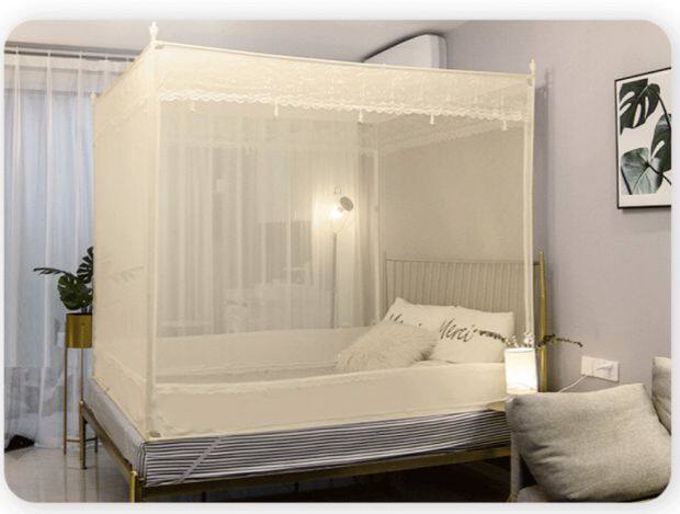 Happy Castle Sitting Bed Mosquito Net Three Doors Square Top Children Anti-Fall Encrypted Thickened Bracket 1 8m Bed 1 5 m Home 2