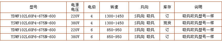 YDWF-220V suction order YDWF-220V blower order YSWF-380V blower order YSWF-380V blower
