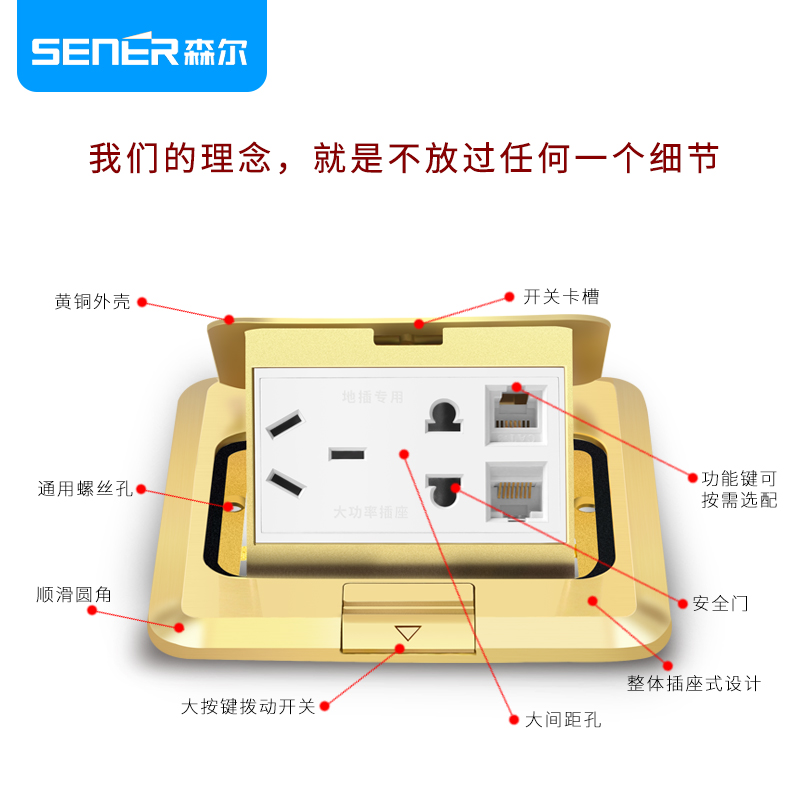 All copper waterproof computer with five holes power plug double computer telephone network cable bouncing ground socket