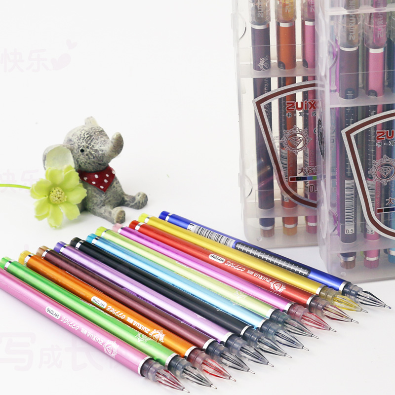 Korea Creative Stationery Supplies Drilling Stones Color Middle Sex Pen 12 Color Boxed Water Pen Student Prize Gift