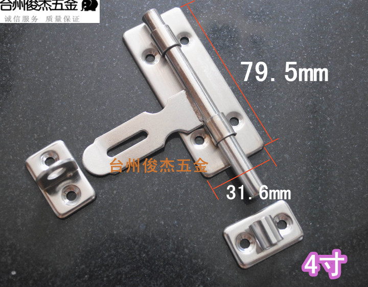 Hexingshun stainless steel with pin buckle bolt surface mounted metal wood door and window anti-theft door bolt bolt * left and right open 4 inches