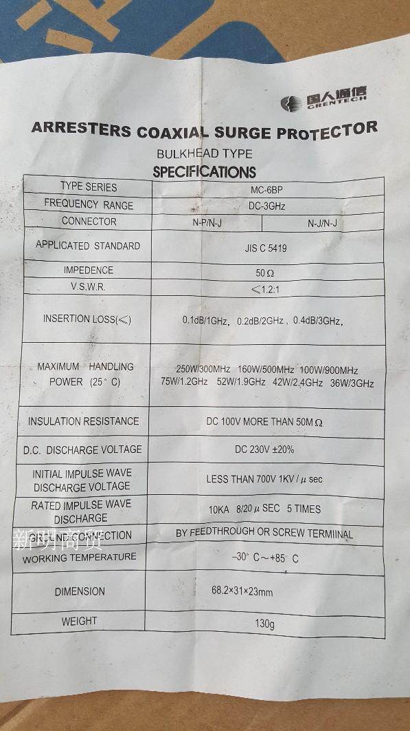 Chinese 2.4G mc-6bp coaxial antenna arrester