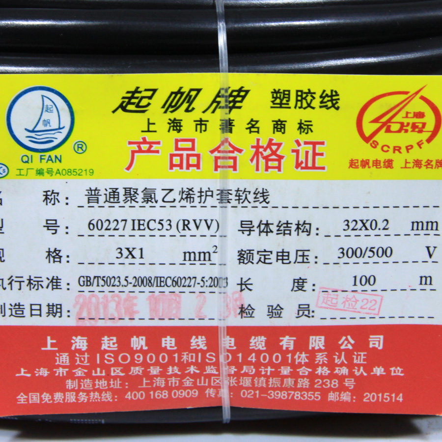 Starting sail wire RVV3 * 1 national standard 3 core 1 square multi-strand soft wire sheath wire electrical power cord