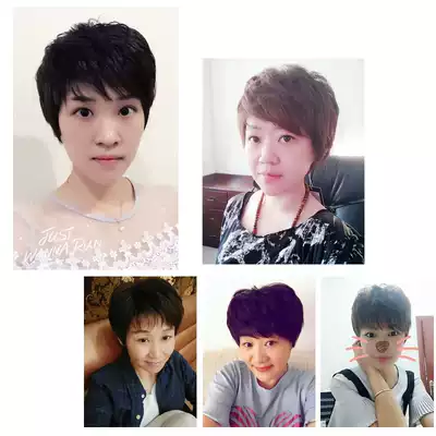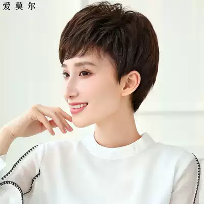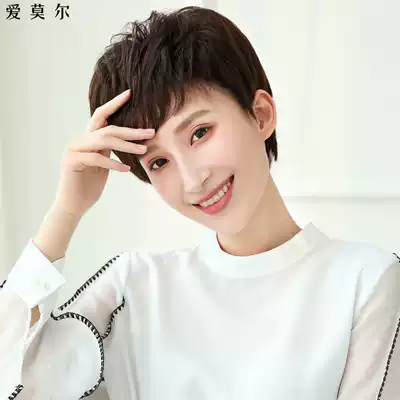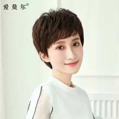 Ai more wig female short hair short curly hair temperament real hair silk natural fashion middle-aged and elderly mother full head cover
