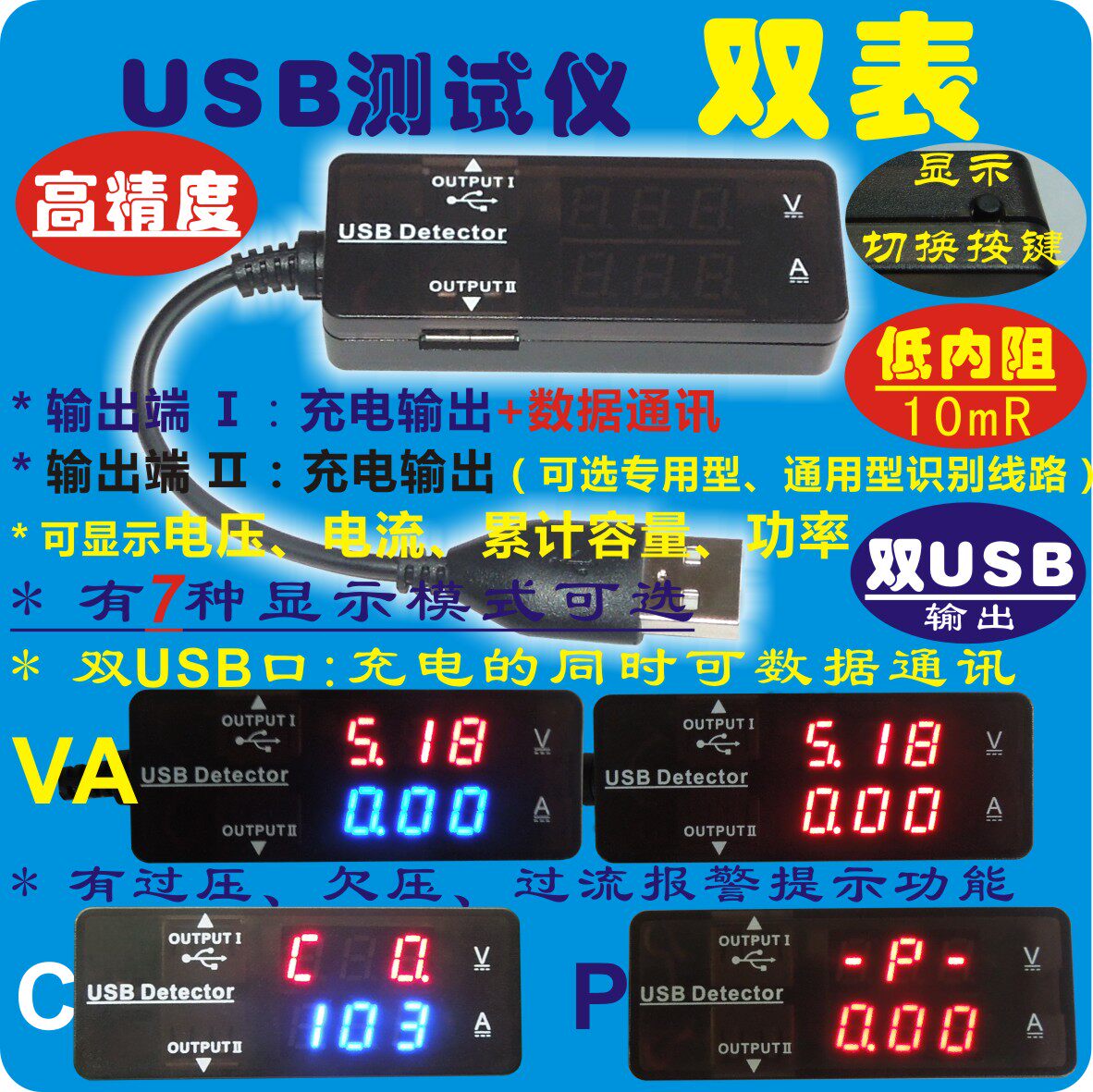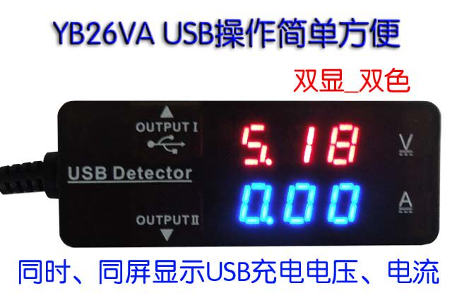 YB26VA dual display USB voltage ammeter Type-C battery capacity tester PD mobile phone charger detection