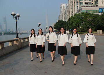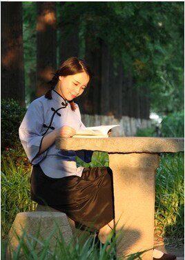Female Sky Blue Woman White Woman Blue Dress Black Zhongshan Dress Male white Zhongshan Men's black shoes