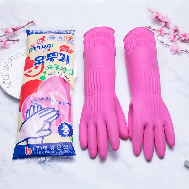 Korean latex kitchen dishwashing household waterproof rubber gloves female durable artifacts laundry cleaning import