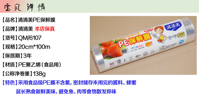 Clear and beautiful thickened PE preservation film food slimming slim waist slim leg film 20cm * 100m 6107