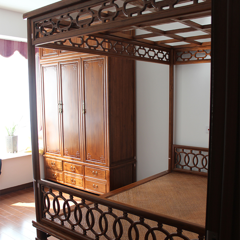 Chinese style shelf bed Shanghai Ming and Qing Classical furniture old elm plus-size bed in fashion antique furniture solid wood double bed