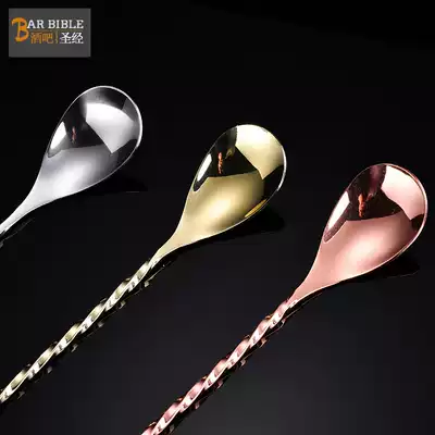 Japanese bartender stainless steel long bar spoon mixing stick mixing spoon ultra-fine thread rotating bar spoon duck tongue bar flat spoon