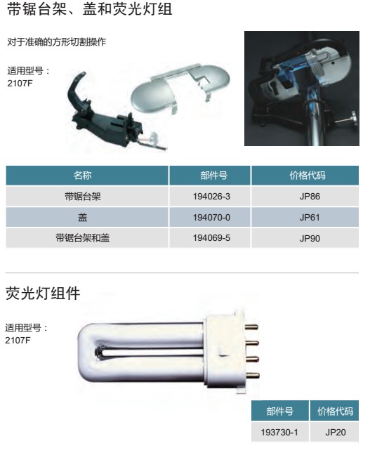 Band saw 2107FK with saw bench (with saw base) 194026-3 cover 194070-0 with saw bench and cover 194069-5 fluorescent light set pieces 193730