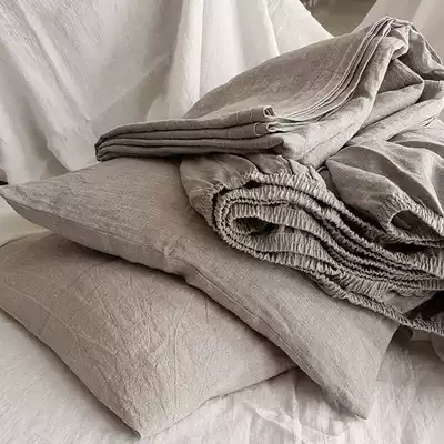 Beautiful one-shoulder French imported raw materials pure linen bed cover antibacterial sweat-absorbing solid color bed cover luxury washed