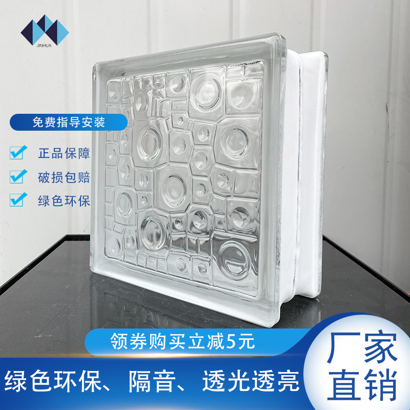 Factory direct Jinghua brand glass brick hollow transparent square rain pattern partition wall powder room entrance