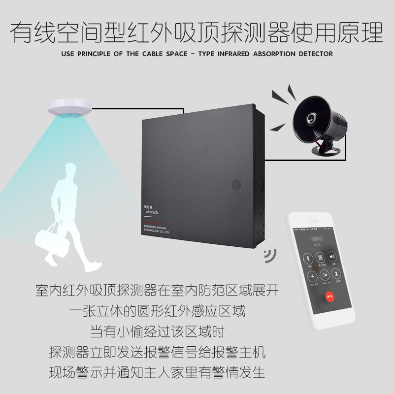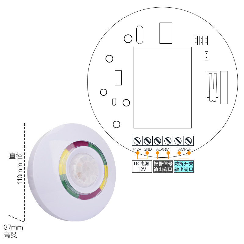 DT-7380 Ceiling Infrared Monitor Indoor Wired Dual Mirror Infrared Microwave Detector Anti-theft Alarm