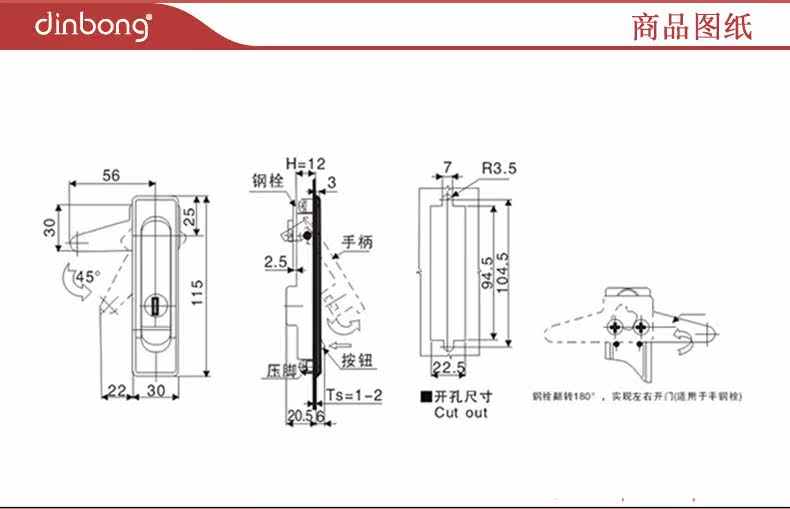 Haitan cabinet lock MS504-1-2 plane lock electric cabinet box switch cabinet door lock MS730-1-2 white black