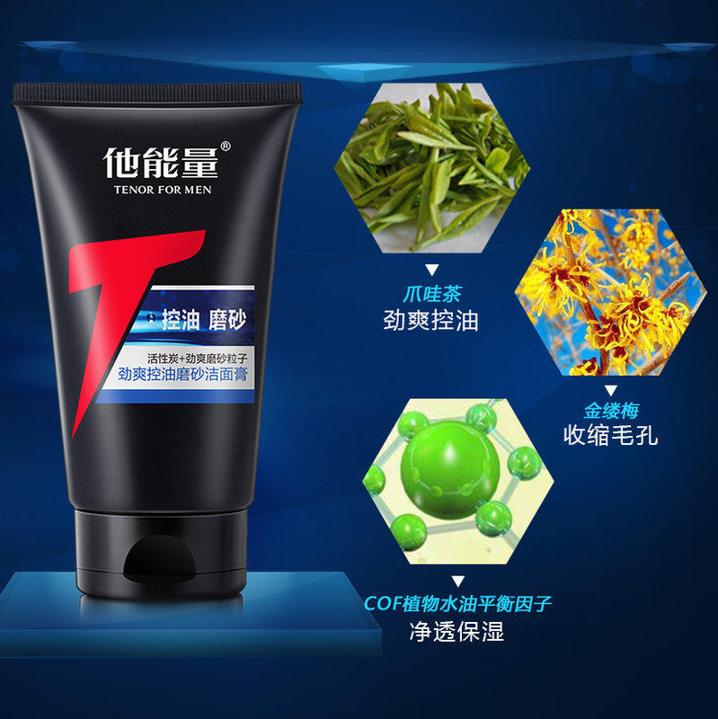 Tanpose He energy frosted wash face cream men special wash face cream controlled oil go black head acne print moisturizing washed face cream