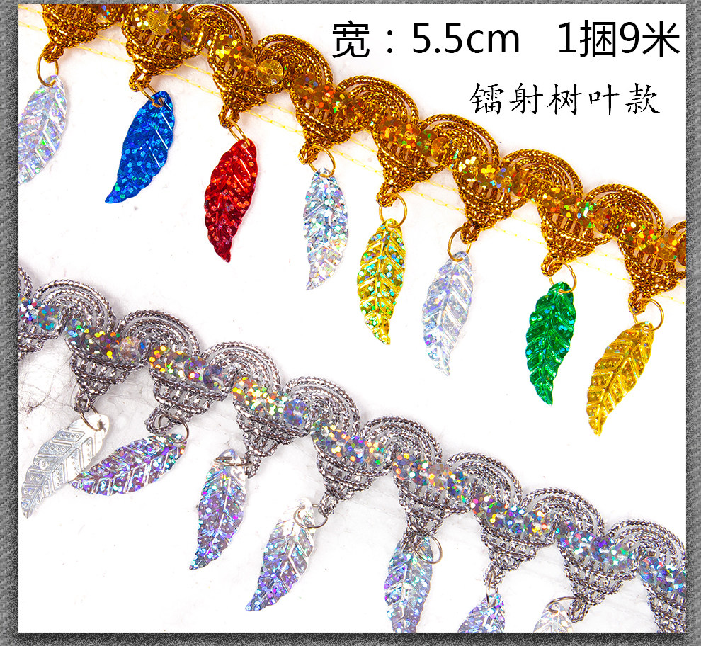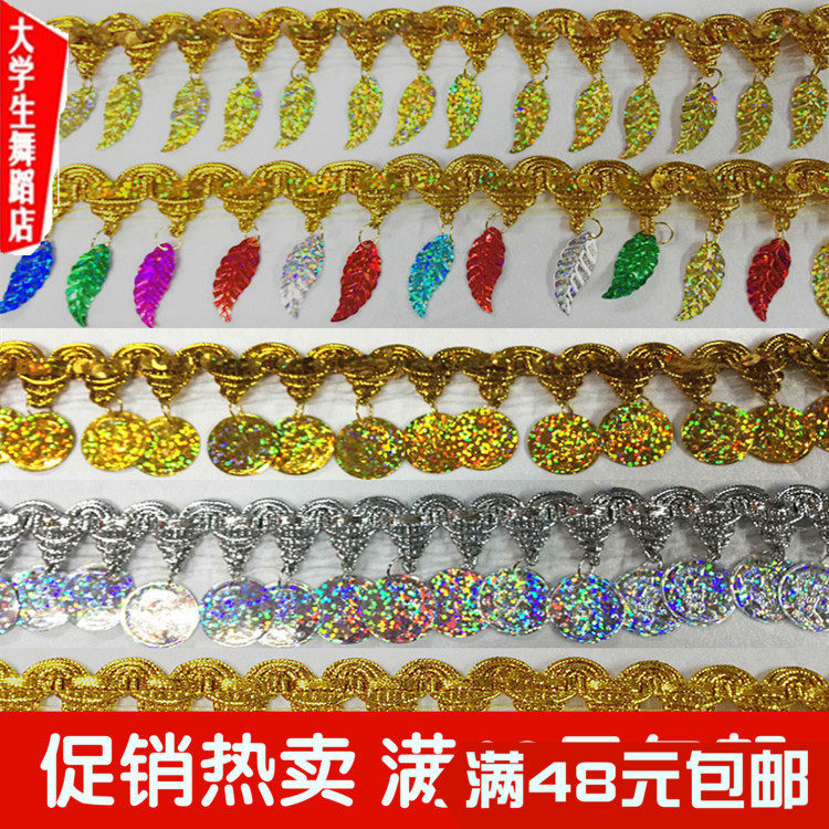 Gold and silver bright pieces lace leaves shell round sheet Bright Pieces Hanging Ears Streaming Su Lace Dancing Clothing Accessories Accessories Accessories