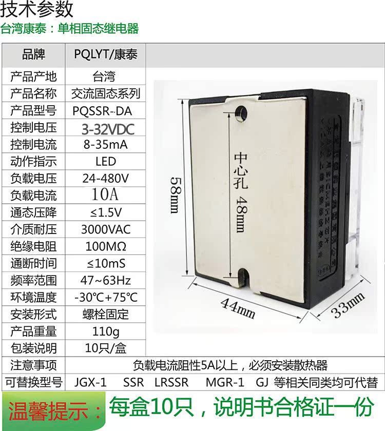PQLYT single-phase solid state relay PQSSR-DA(10A) SSR-10DA DC control AC module