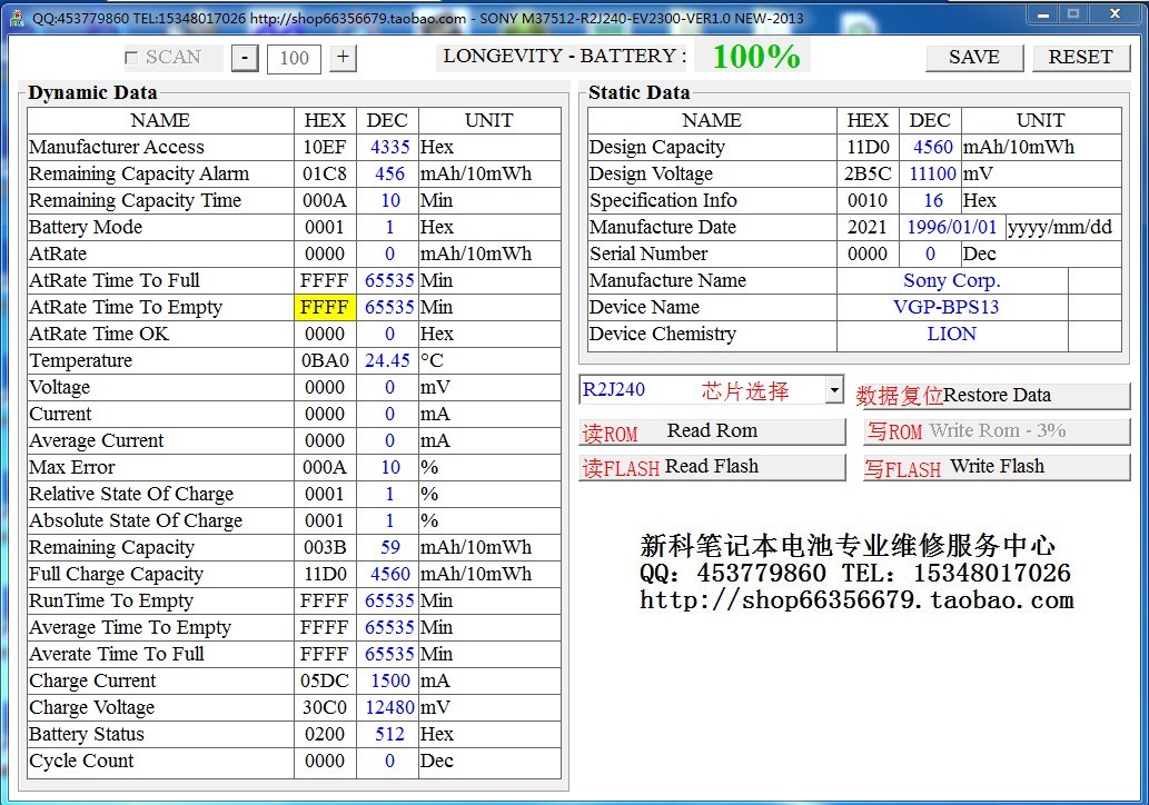 Sony SONY BPS series M37512M37516 L66R2J240 reset repair software
