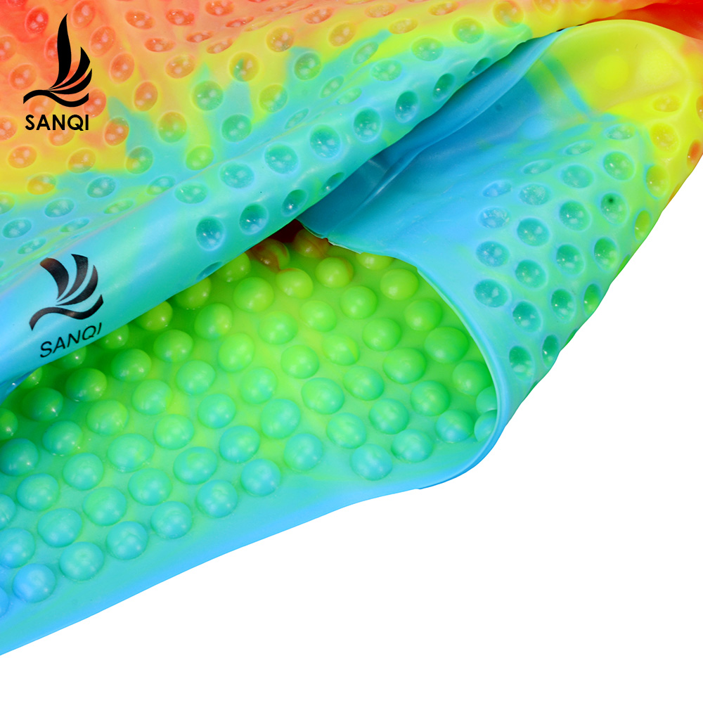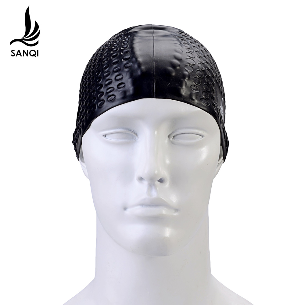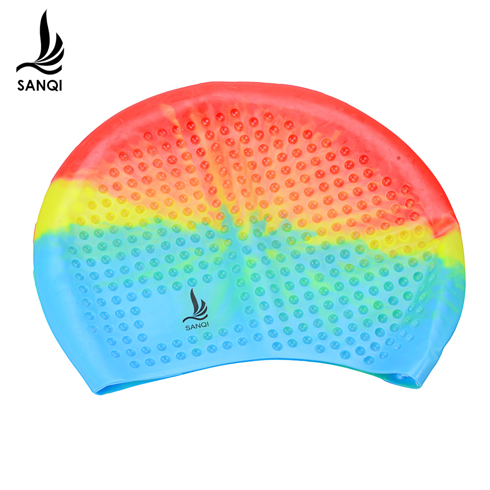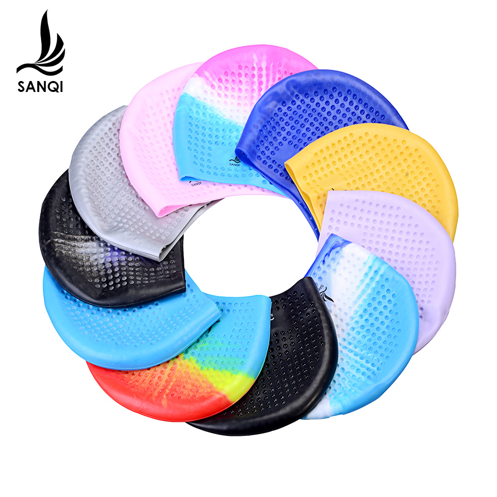 Three chic inner grain long hair waterproof bubble silicone swimming cap Large number adult men and women Fashion Swimming Sports Equipment