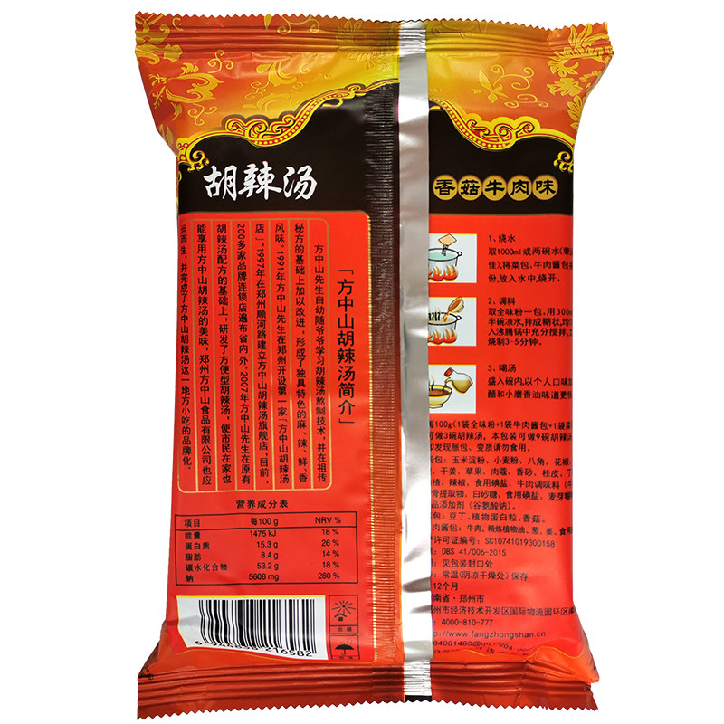 Henan special production Fang Zhongshan Huo spicy soup stock Carefree Town Hu Spicy Soup Mushrooms Beef Taste 300 gr Breakfast fast food