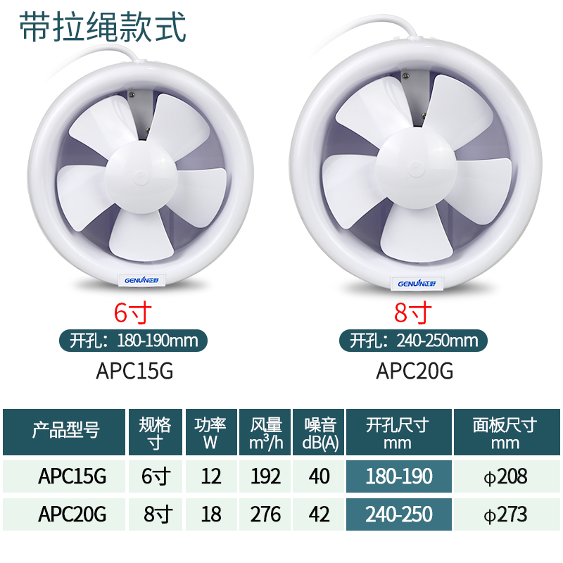 Positive field exhaust fan 6-inch round make-up room Home ventilator 8 Kitchen Glass Windows Mute exhaust fan APC15G
