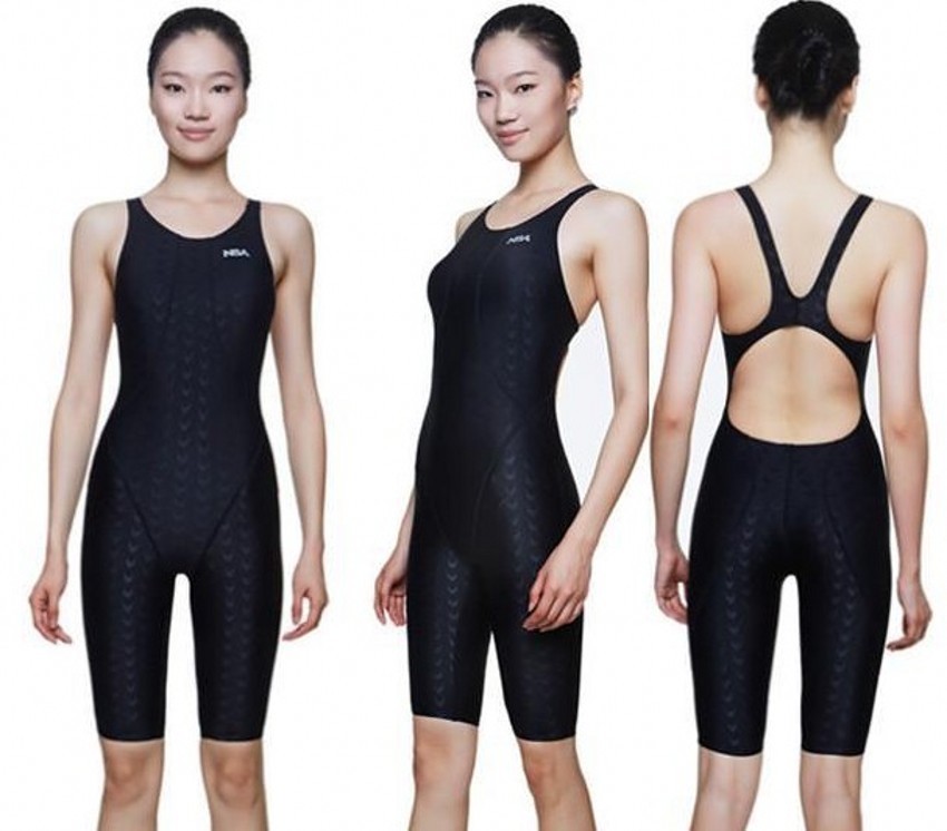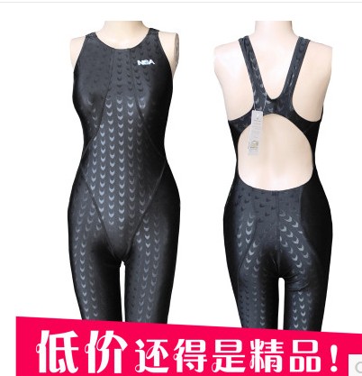 NSA Professional Jumpsuit Women's Quick Dry Shark Skin Flat Training Sport Conservative Slim Swimsuit Women's Pure Black L