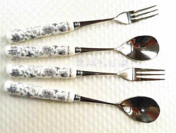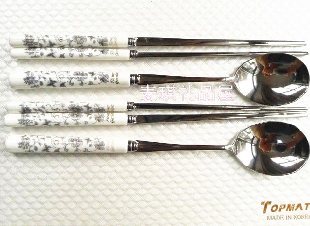 TOPMATE Korean kitchen tableware imported wedding gift gift gray butterfly ceramic spoon chopsticks 5P
