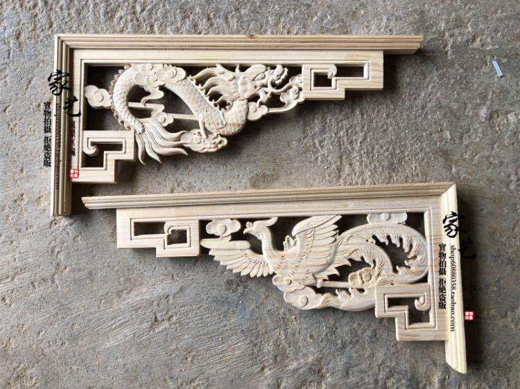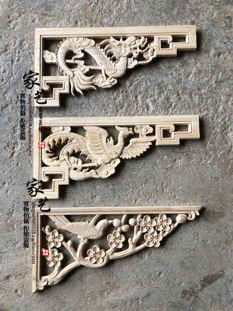 East Yang Wood Carving Chinese Antique Hollowed-out Solid Wood Corner Flower Dragon Pineapple dragon Pineapple Angle door lintel door lintel Background wall Decoration Diagonal