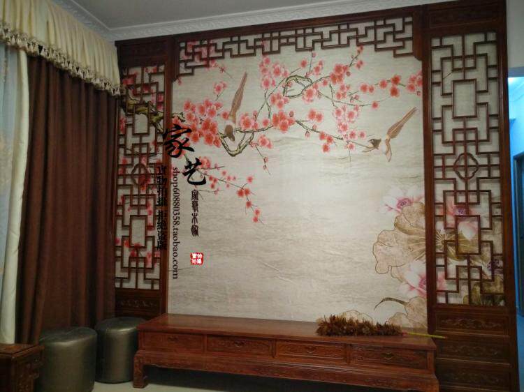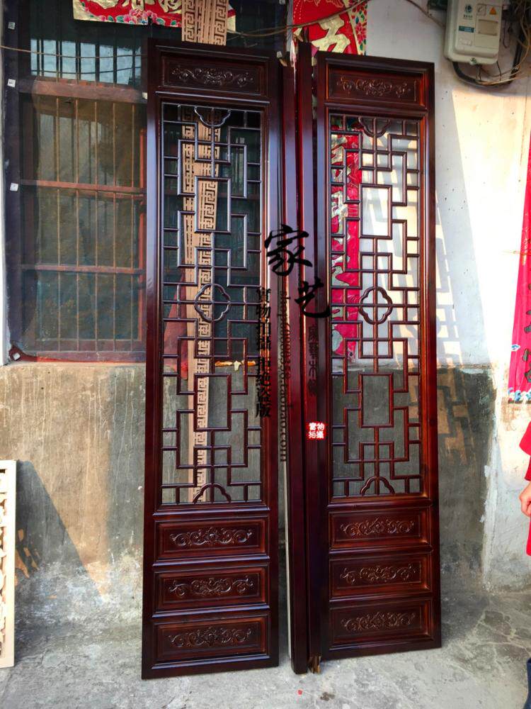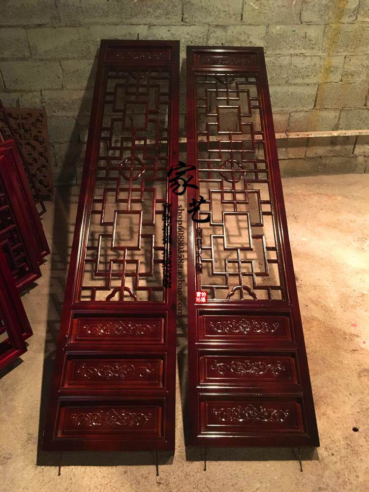 Dongyang wood carving solid wood lattice hollow antique doors and windows elm living room porch Chinese TV background wall partition