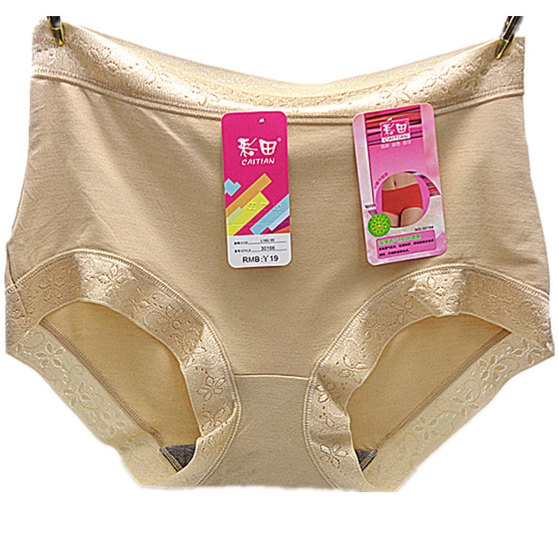 4 price colored fields Underpants women 30166 Modale cotton bamboo charcoal High waist Large size Bacteriostatic Flat Feet Bag Hip Pure Color Thin