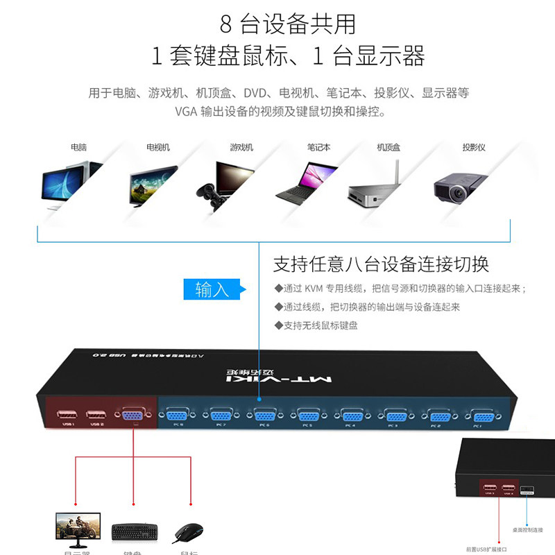 Maxtor Torque KVM Switch 8-port USB keyboard mouse 8-in-1-out multi-computer screen switch Rack-mounted eight computers share a display printer sharer Extension cable