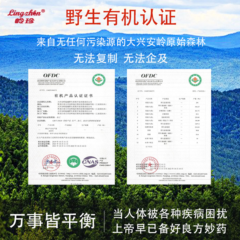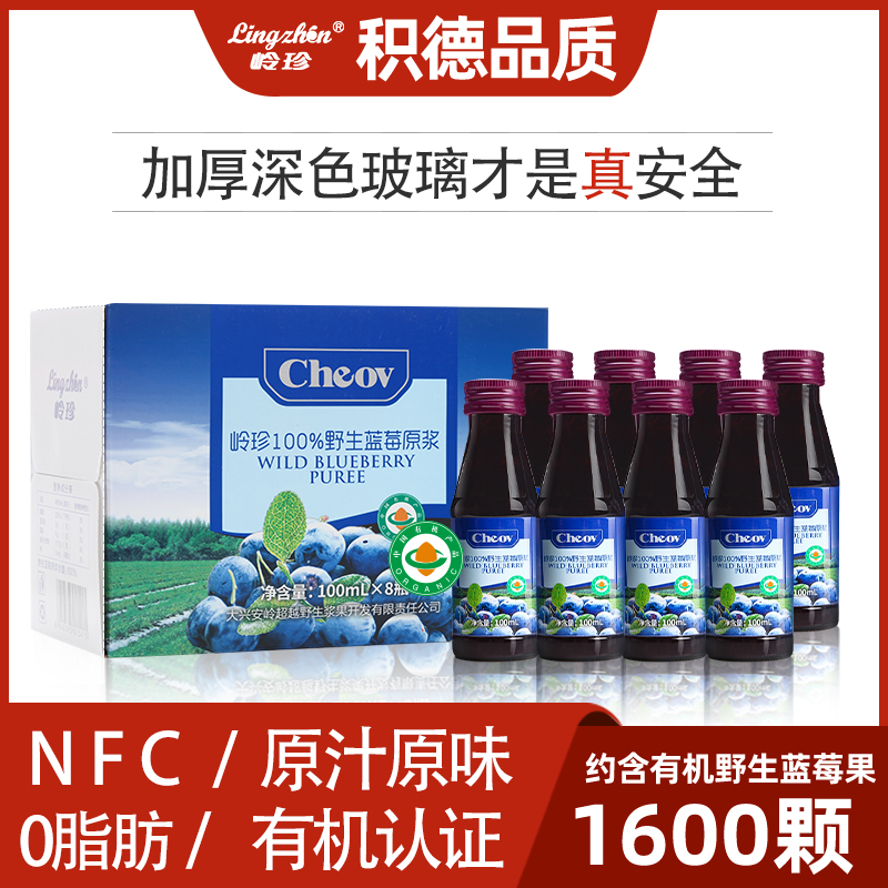Lingzhen pure organic wild blueberry juice original berry puree bottle fruit juice saccharin-free 0 fat new New Year gift box.