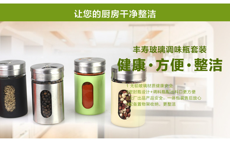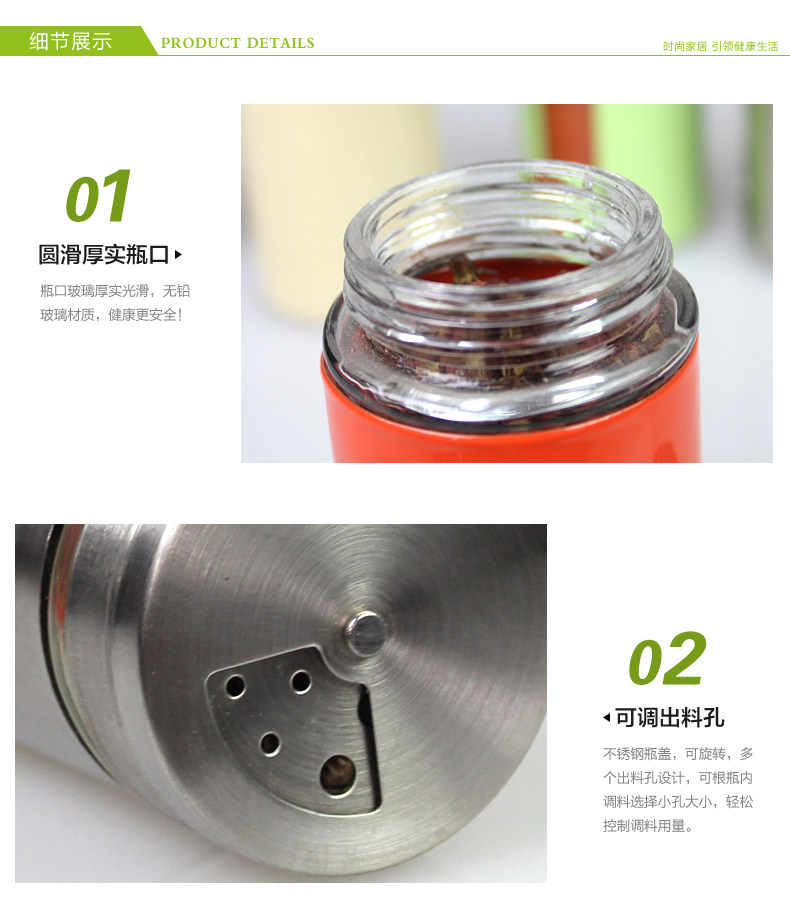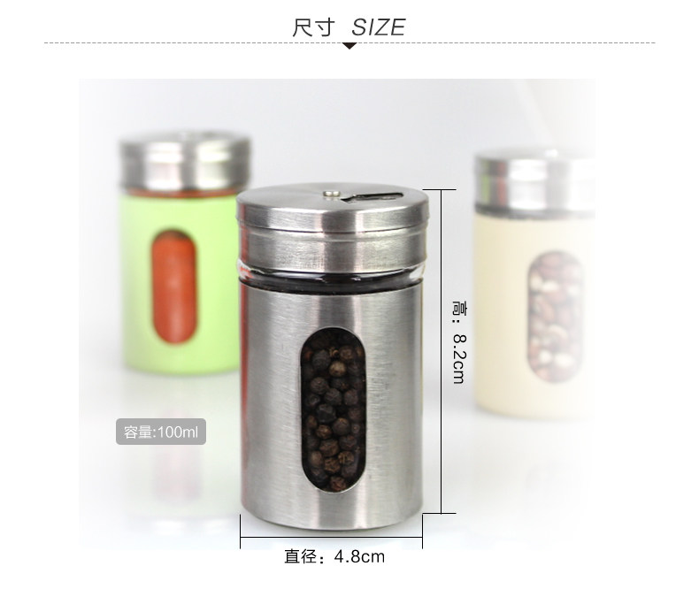 Glass flavor bottle Concort Box Seasonal kitchen supplies Pepper cans Stainless steel cover BBQ