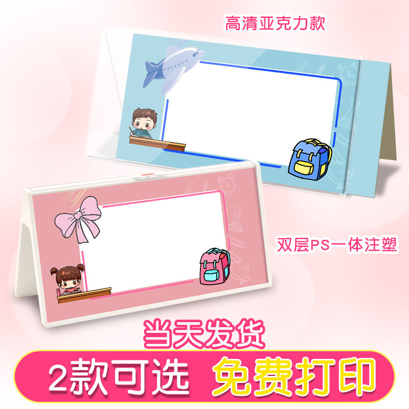 Name card custom seat card Conference card table card table card Acrylic double-sided triangle stand card desktop display card Transparent name card First grade student seat card Judge seat name card Primary school student