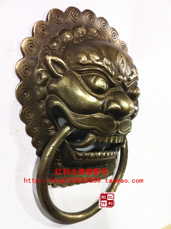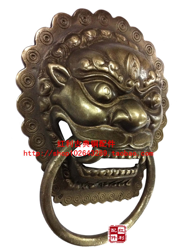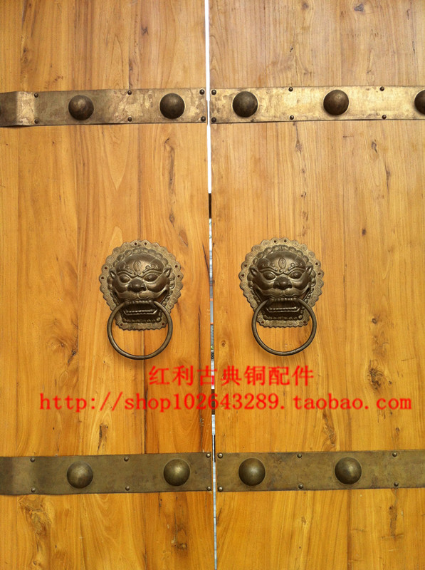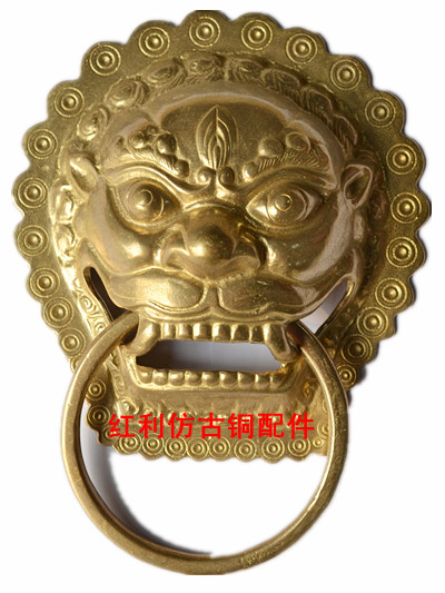 Imitation ancient solid wood gate pure copper handle behemoth head door ring lion head ciro prostrate with beasts large handle door lock
