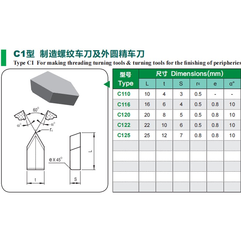 Zhengzhuzhou carbide welding blade thread turning blade YS8 C116 guarantee YG3